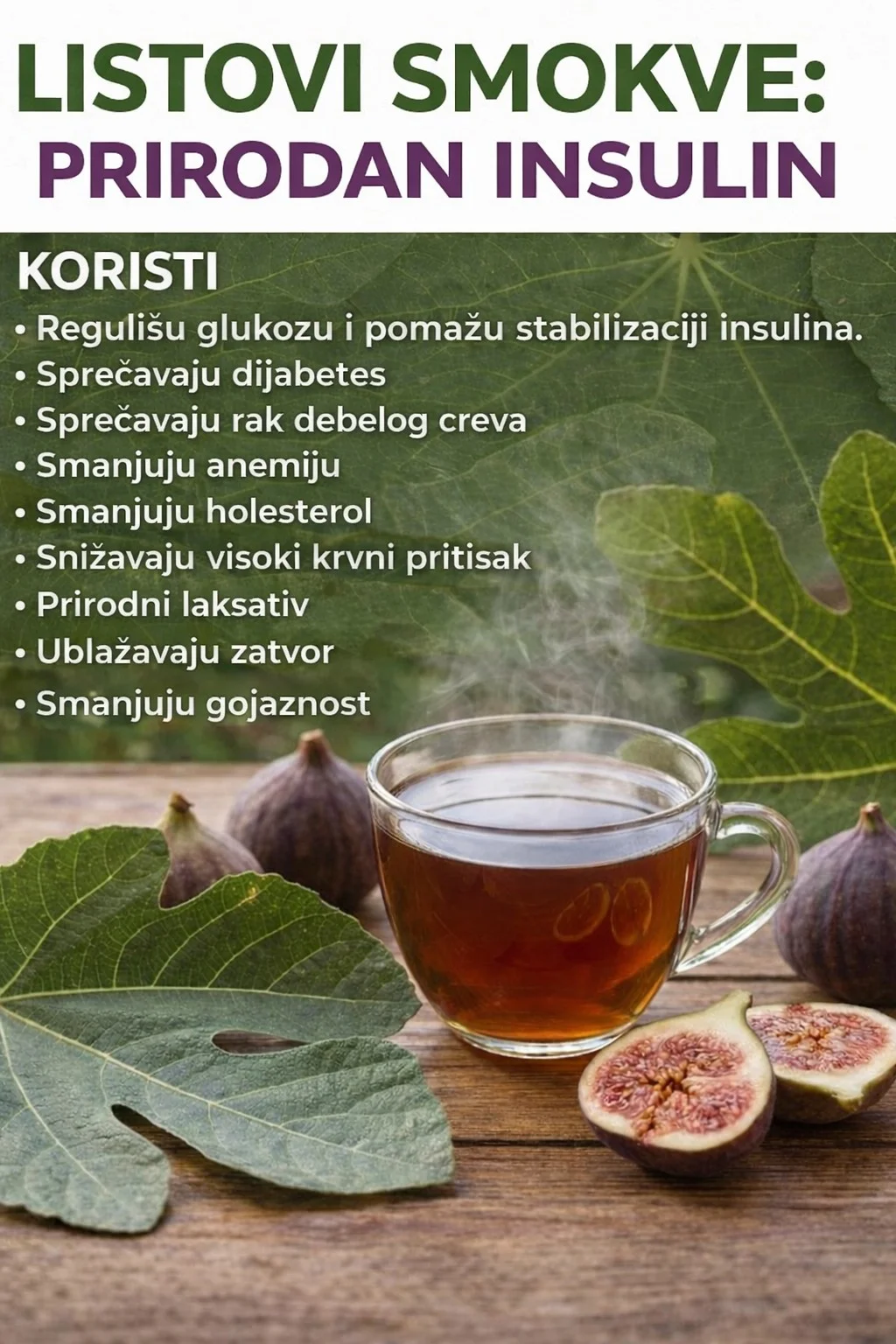 Listovi smokve sadrže spojeve koji pomažu u kontroli šećera u krvi i poboljšavaju osjetljivost na insulin, posebno kod dijabetesa tipa 2.