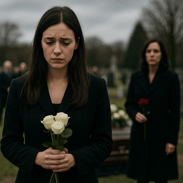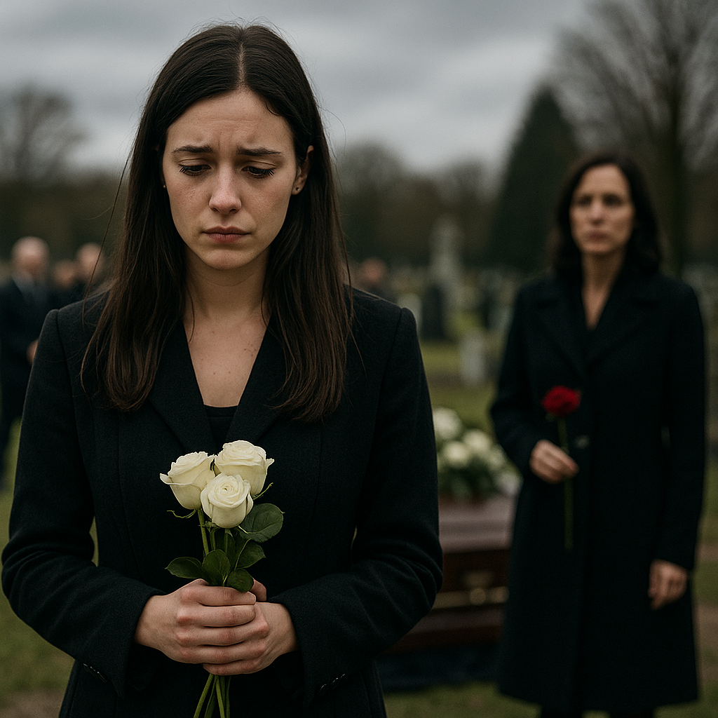 Sara je stajala kraj kovčega svog oca, držeći buket bijelih ruža.