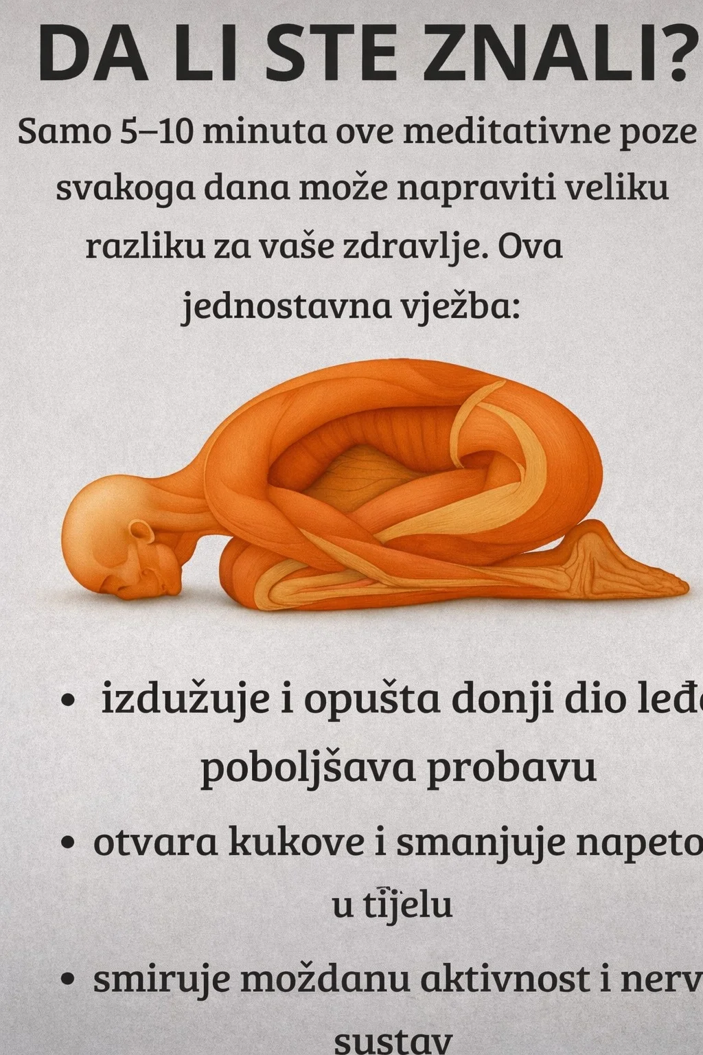 - Stanite s utegom ispred sebe, nagnite se naprijed držeći leđa ravno i koljena lagano savijena.