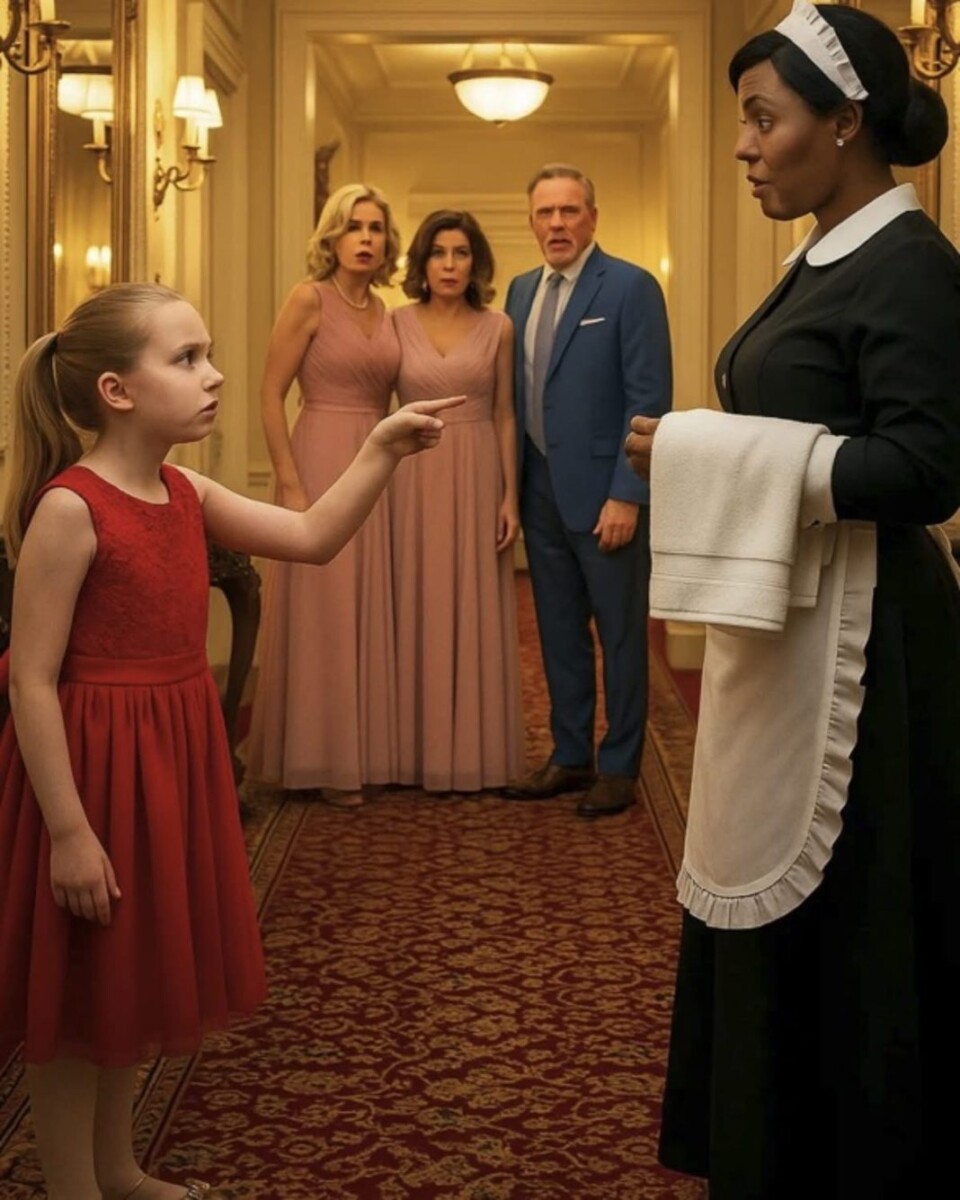Prostorija je bila tiha, napeta, gotovo nerealna. Zlato, dijamanti, svilene haljine i visoke potpetice. Sve je to bilo oko nje, a ipak je Amelia, šestogodišnja djevojčica, ignorirala sve to. Njene oči nisu gledale prema blistavim modelima u skupocjenim kreacijama, niti prema luksuznim detaljima oko nje. Gledala je samo jednu osobu – ženu u običnoj crnoj haljini i bijeloj pregači, ženu koja je bila kućna pomoćnica, osoba koja je čistila i pomagala. I tada je Amelia, mirnim glasom, izgovorila riječi koje će zauvijek promijeniti živote svih prisutnih: