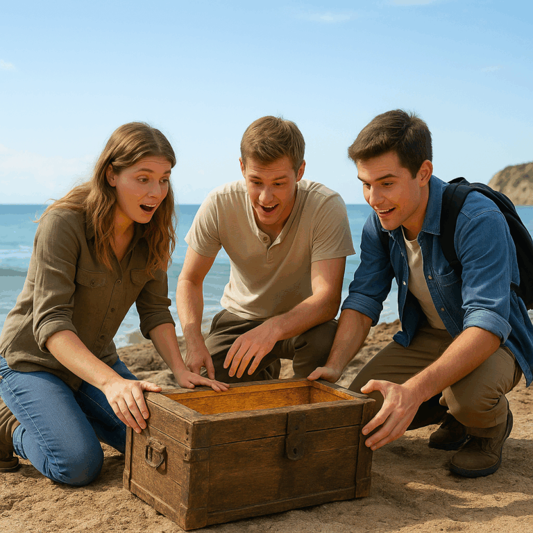 Na dubini od pola metra, čuli su metalni zvuk. Izvukli su mali sanduk, star i prekriven solju. Kada su ga otvorili, unutra nije bilo zlata ni dragulja — već stara kožna knjiga i nekoliko pisama.