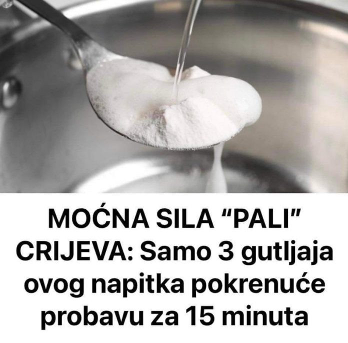 Pola kašičice sode bikarbone pomešajte u šoljici tople vode. Ova hrana se generacijama smatra saveznikom dobre probave. Važno je napomenuti da možete koristiti samo medicinsku sodu bikarbonu bez aluminija, koju možete kupiti u ljekarnama ili prodavnicama zdrave hrane.