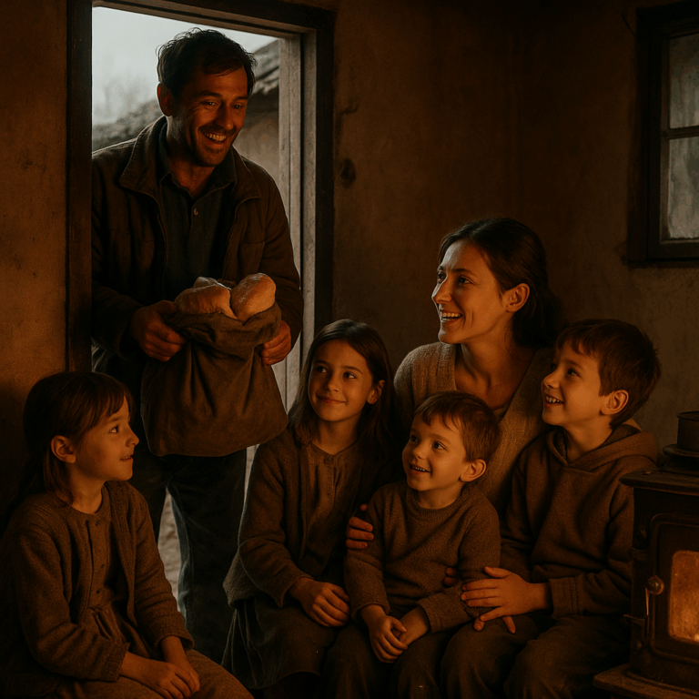 Radovan se vratio kući sa suzama u očima. Milena je mislila da sanja kada je videla da nosi punu torbu hrane. Deca su potrčala ka njemu, a kuća je te večeri bila puna smeha prvi put posle mnogo meseci.