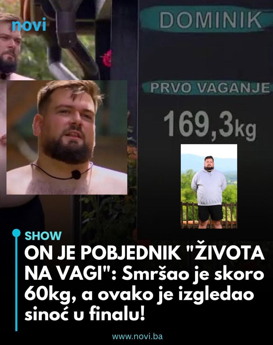 Dominik je odnio pobjedu u devetoj sezoni showa ‘Život na vagi’! Osim titule, osvojio je i novčanu nagradu od 20.000 eura, a evo tko je on. Tijekom showa izgubio je 57,3 kilograma odnosno 33,8 posto svoje tjelesne mase. Iz ovog projekta izlazi sa 112 kilograma. U finale je ušao zahvaljujući zlatnoj ulaznici, a bio je i kapetan crvenog tima u showu. Na prvom vaganju imao je 169,3 kilograma.