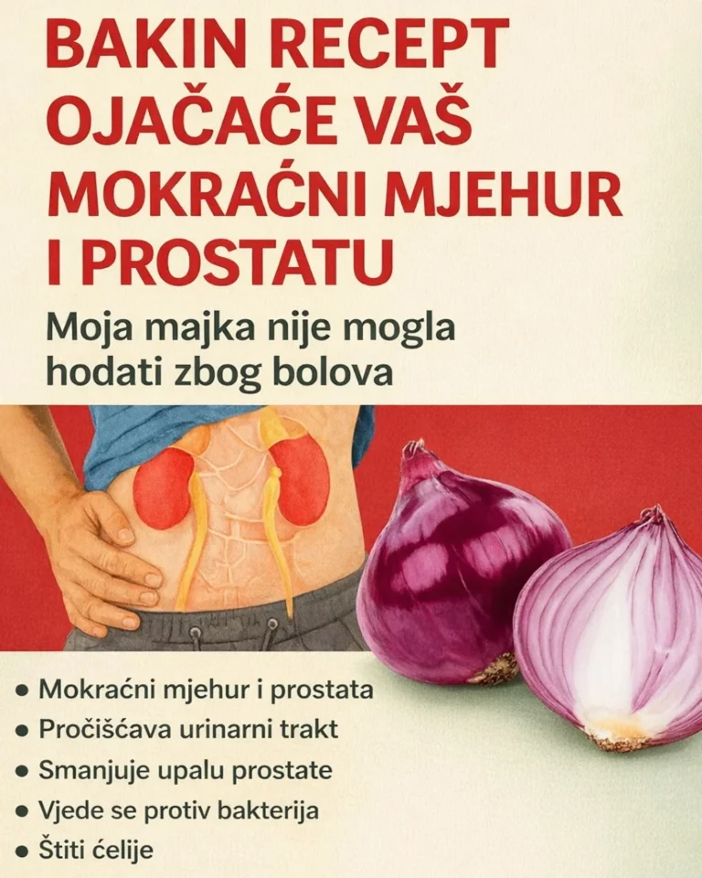 Luk je jedna od najcjenjenijih namirnica u tradicionalnoj narodnoj medicini, a bakin recepti s lukom i danas se koriste kao prirodna podrška zdravlju mokraćnog sistema i prostate. Zahvaljujući svom bogatom nutritivnom sastavu, luk pomaže organizmu da se prirodno očisti, ojača i održi pravilnu funkciju vitalnih organa