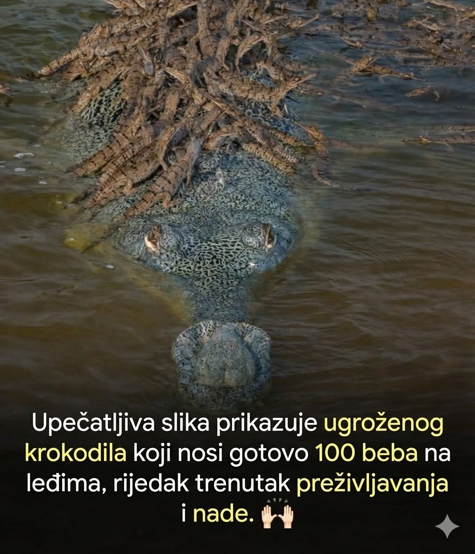 Krokodil nosi desetine mladunaca na svojim leđima kroz rijeku. 🐊