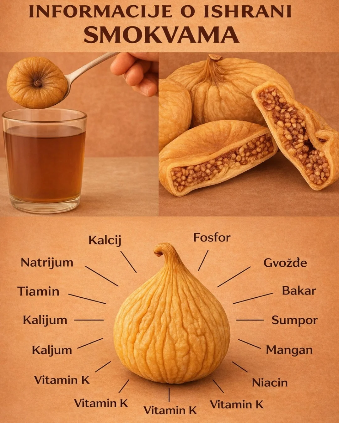 Nutritivno, suhe smokve su bogate prirodnim vlaknima, koja doprinose normalnoj probavi i osjećaju sitosti. Sadrže i važne minerale poput kalcija, kalija i magnezija, koji igraju ulogu u održavanju zdravlja kostiju, mišića i nervnog sistema. Upravo zbog ovakvog sastava, u tradicionalnim kulturama suhe smokve su često povezivane s vitalnošću i općim blagostanjem.
