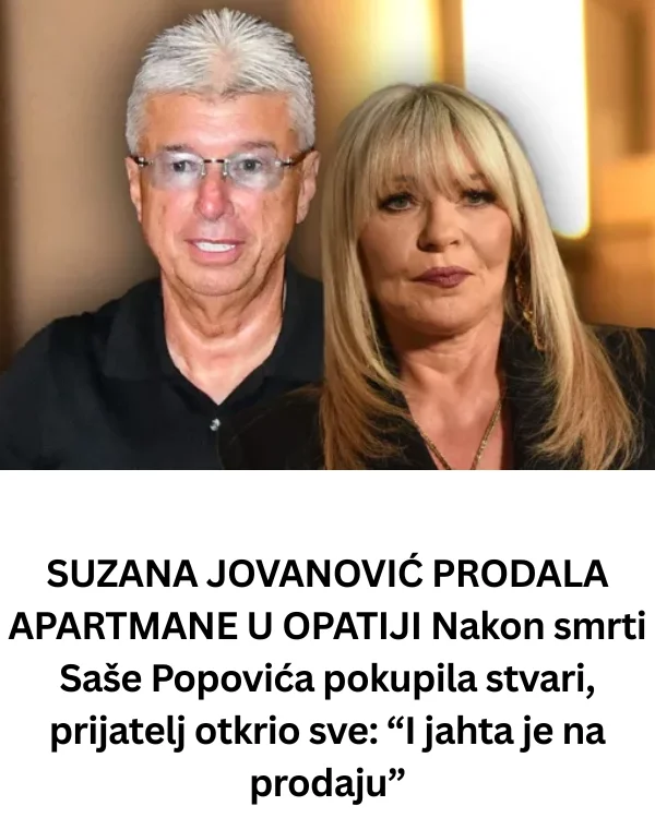 Nakon gubitka supruga s kojim je provela više od dvije decenije, pjevačica Suzana Jovanović donosi važne životne odluke. Prodaja nekretnina u Opatiji i najava prodaje jahte simbolično označavaju početak nove faze – bez voljenog partnera.