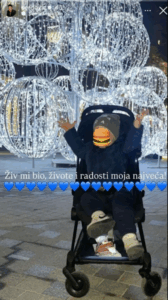 Na pomenutoj društvenoj mreži, Šerifovićeva je objavila fotografiju sina Maria koji je bio u kolicima sa rukama, koje je digao u vazduh i pozirao ispred ogromnih novogodišnjih ukrasa.