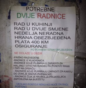 „Sjveže razvedene, radnice iz kladionice, radnice koje planiraju zaraditi za haljinu i otići na svadbu, a zatim se vratiti kod mame i tate, radnice koje žele zaraditi za kartu do zemlje svojih snova (Njemačke), kao i radnice čija je najbolja prijateljica zaposlena na budžetu“, stoji u oglasu kao uvjetima za rad u njegovoj kuhinji.