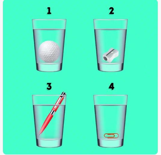Do tog odgovora doći ćete na način da posmatrate svaki od predmeta koji se nalaze u čašama. Kada dođete do zaključka koji predmet ima najveću masu, lako ćete eliminisati tu čašu kao onu sa najmanje tečnosti.