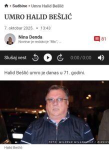 Podsjećamo, Halid Bešlić je preminuo uslijed teške bolesti, 7. oktobra, na Kliničkom centru Univerziteta u Sarajevu.