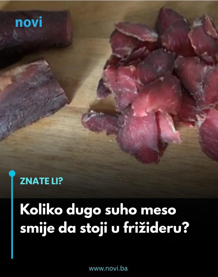 Neobrađeno suho meso, ono koje još nije posoljeno ili dimljeno, može da stoji svega tri do četiri dana i to isključivo u najhladnijem dijelu frižidera. Poslije tog perioda rizik od kvarenja naglo raste, čak i ako na prvi pogled izgleda u redu. Zato se savjetuje da se što prije posoli, termički obradi ili isječe i prebaci u zamrzivač.