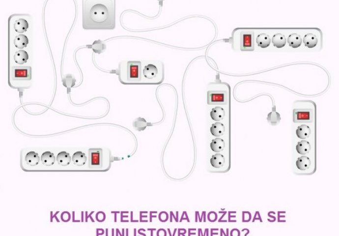 Tačan odgovor je 8 telefona. Jedan od produžnih kablova ima presječen kabal, a drugi produžni uopšte nema kabal.Također jedna utičnica na svakom od kablova će biti zauzeta kablom drugog produžnog.