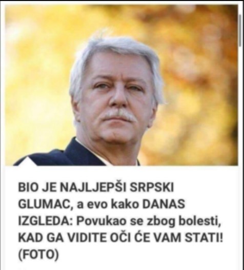 – Ništa ne radim i ne mogu da radim. Bolestan sam i ne osjećam se dobro, to je jedan od razloga zašto ne glumim – rekao je Aljoša Vučković za “Kurir” ne želeći da otkriva detalje o bolesti.