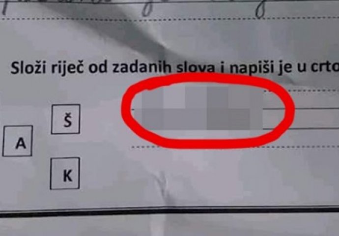 Share Facebook Twitter LinkedIn Pinterest Email Učenik je od slova trebao sastaviti riječ, svojim rješenjem je nasmijao učiteljicu Zadatak je bio jednostavan, no ovom je učeniku nešto drugo palo na pamet. Odgovor nasmijao učiteljicu do suza: