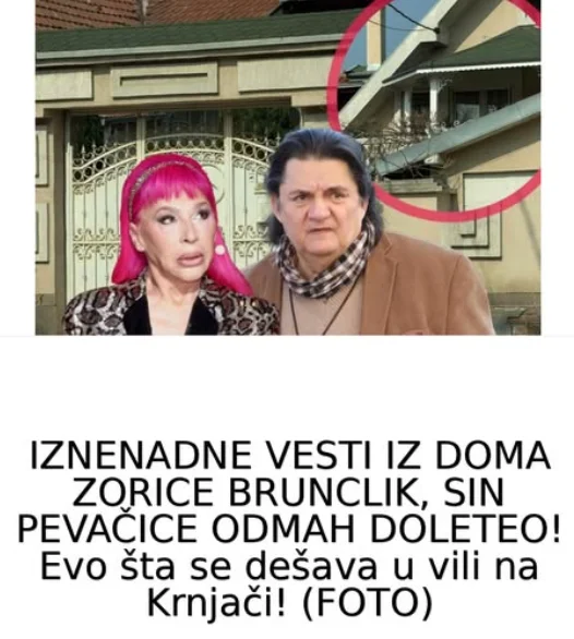 Posljednjih dana pojavile su se informacije o dešavanjima u domu poznate pjevačice Zorice Brunclik, koje su brzo privukle pažnju javnosti. Posebno interesovanje izazvala je vijest da je njen sin hitno došao u porodičnu vilu u Krnjači.