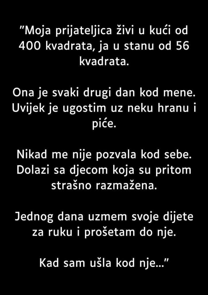 “Moja prijateljica živi u kući od 400 kvadrata, ja u stanu od 56 kvadrata. Ona je svaki drugi dan kod mene. Uvijek je ugostim uz neku hranu i piće.