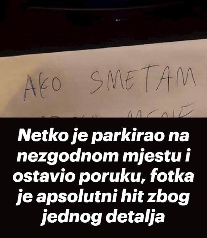 Share Facebook Twitter LinkedIn Pinterest Email Nepoznata osoba kratko se morala snaći za parking, te je ostavila auto na nezgodnom mjestu. Kako ne bi napravila problem drugim vozačima, ostavila je obavijest. A da se ne bi našao netko tko ne razumije hrvatski, poruka ima i urnebesan slikovni dio…