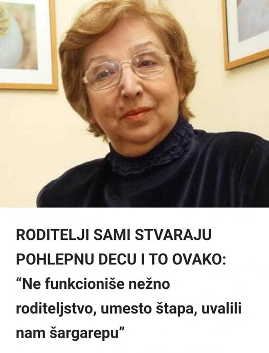 – Kroz tri godine u vrtiću shvatila sam da su deca postala nesnosna, posebno otkako smo počeli da primenjujemo pozitivno uslovljavanje i blaga prinuda. Vidite kako je to smišljeno. Vi ste običan roditelj koji barata štapom i pretnjama, a oni nametnu onda neke stručne, visokoparne izraze. Pa sad ti misli šta ti je to. A ja vam kažem da nije ništa. Naše generacije su radile iz stragana. A sada su umetnuli interes između deteta i rada – ako pokupis igračke, dobićes…Dete na kraju počinje vas da uslovljava, dok momenta kada obrne kolo, izgibili ste bitku u vaspitanju.