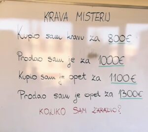 Eto, ponovo je aktuelna „misterija jedne krave“, manje ili više lude, pa vam dajemo za zadatak da izračunate koliko je na kraju zaradio čovek koji je preprodajom krave želeo da dođe do profita.