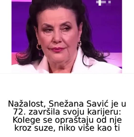 U posljednje vrijeme pojavile su se priče koje govore da je poznata glumica Snežana Savić završila svoju karijeru u 72. godini, uz emotivne oproštaje kolega i publike. Međutim, stvarnost je znatno drugačija od senzacionalnih naslova koji kruže internetom.