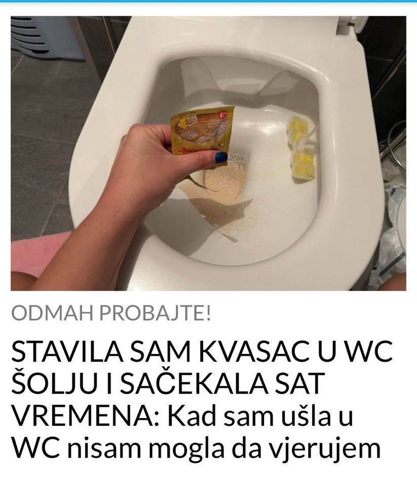 Dovoljno je prokuhati malo vode. Zatim otopite kašičicu kvasca u kipućoj vodi i sipajte smjesu u WC šolju.