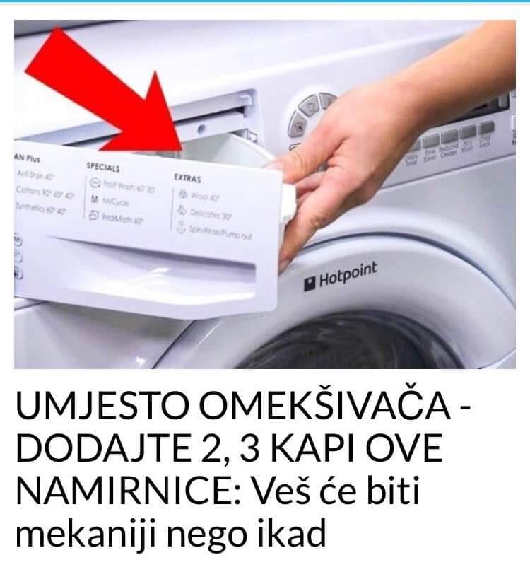Sirćetom možete ukloniti mrlje sa pegle, očistiti kupatilo, frižider, mikrotalasnu, ali sada ga možete upotrebiti i kao omekšivač. Preporučuje se da koristite destilovano alkoholno sirće i jabukovo sirće. Sipajte u pregradu za omekšivač najviše 3 kašike sirćeta. Veš će biti nevjerovatno mekan i baršunast, a neće se osjećati na sirće.