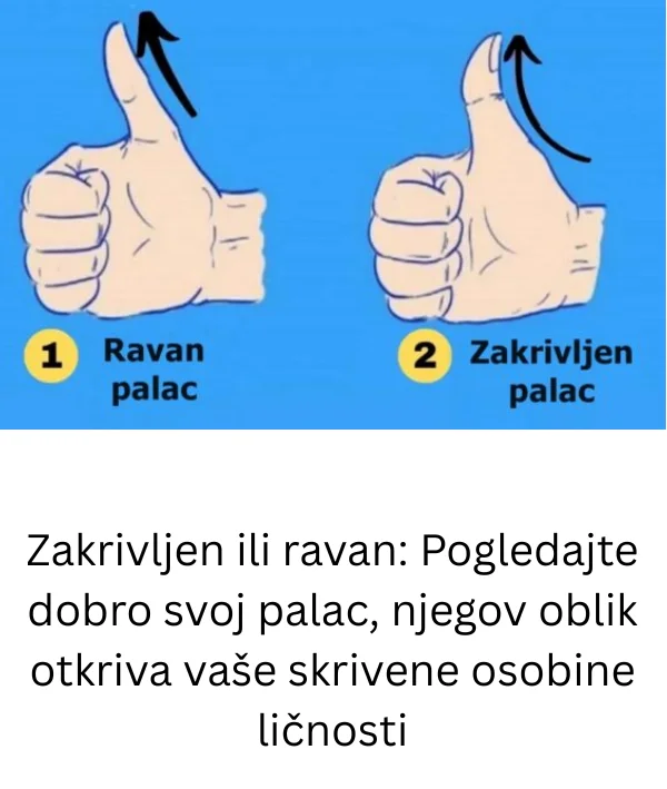 Na prvi pogled, oblik palca možda djeluje kao beznačajna fizička osobina. Međutim, prema određenim psihološkim posmatranjima i testovima ličnosti, upravo zakrivljenost ili ravnost palca može otkriti mnogo o vašem karakteru, unutrašnjem svijetu i načinu na koji reagujete na svakodnevni život.